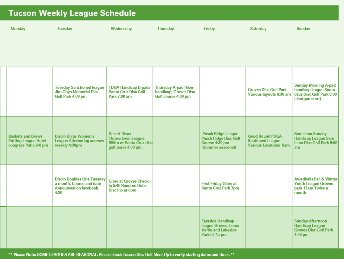 Local Leagues Calendar